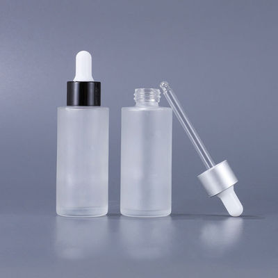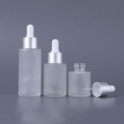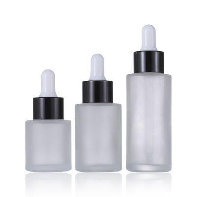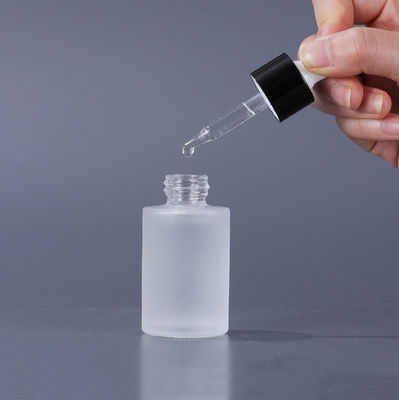 Glass Cosmetic Containers Flat Shoulder Frosted Cosmetic Serum Dropper Bottle
