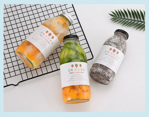 High quality glass material, thickened bottle mouth, bottle bottom thread non-slip, good sealing, inverted water leakage.300ml 350ml 500ml multiple capacity selection, used for all kinds of fruit juice drinks packaging